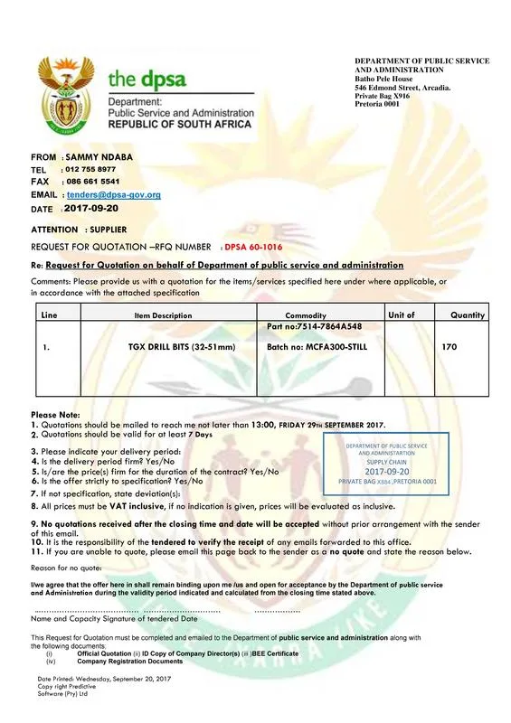 - Before one can even verify the sender's email address. Why in the world would the Department of Public Service & Administration (DPSA) need drill bits? This is a red flag!