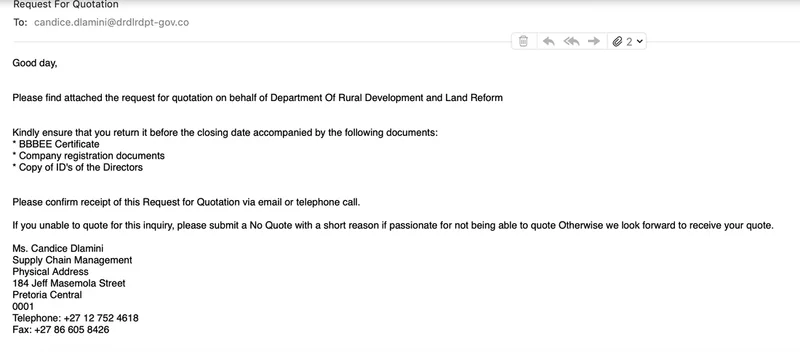 candice.dlamini@drdlrdpt-gov.co is not a government email address.