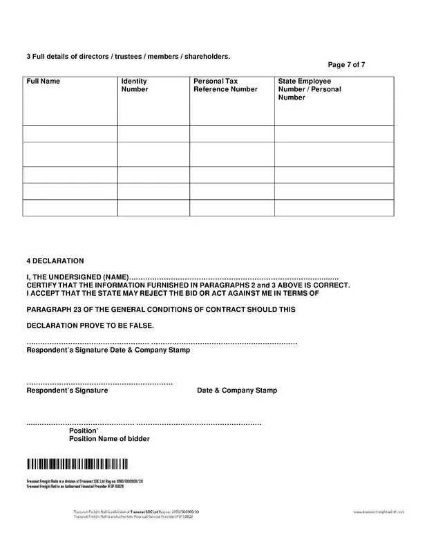 Transnet Freight Rail Tender Advice Centre