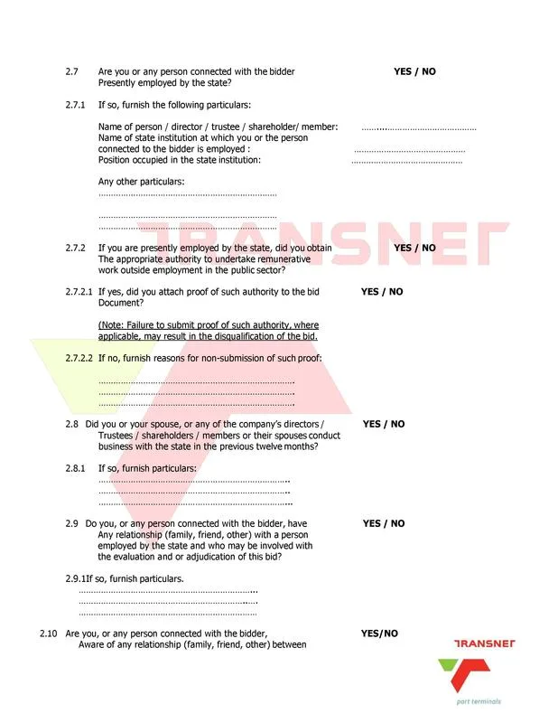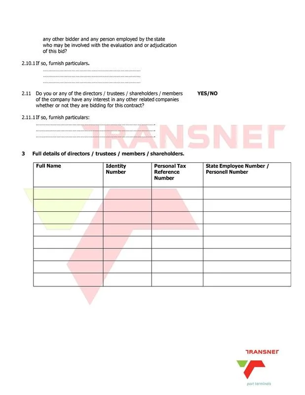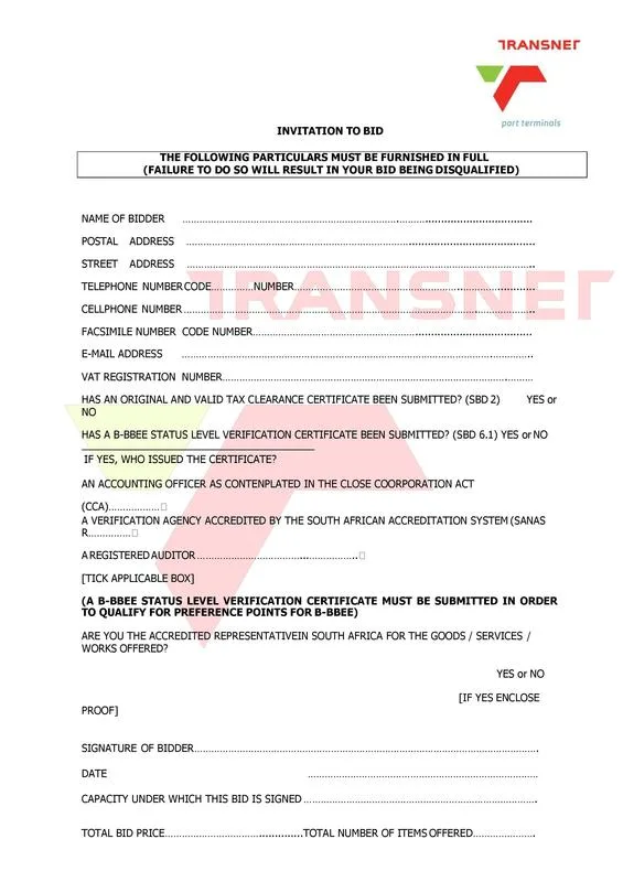 of Transnet Soc Ltd is sending out a request for quotation to all